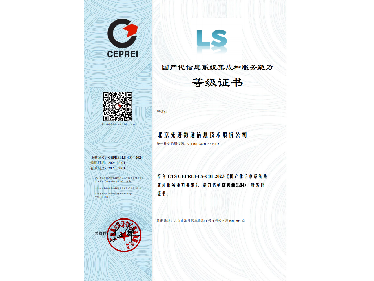 • 国产化信息系统集成和服务能力四级证书