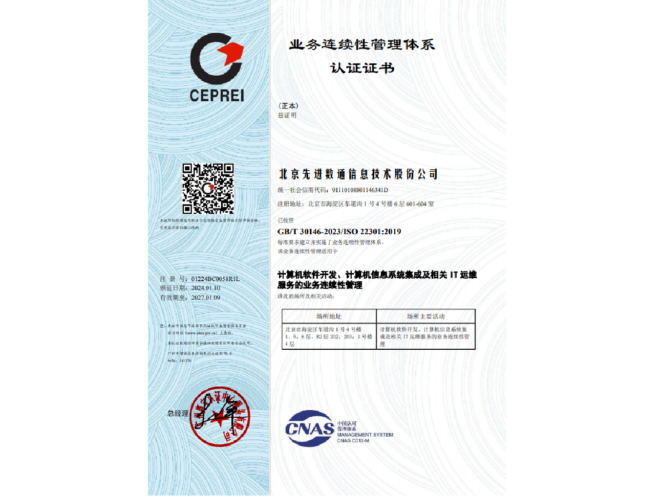 • ISO22301业务陆续在性管理体系认证