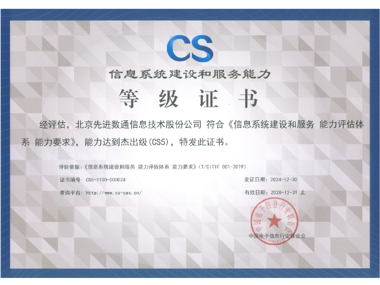 • 信息系统建设和服务能力评估杰出级(CS5)